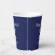 Happy Hanukkah Blue Holiday paper cup, with a simple white menorah and script typography design. With white customisable lettering, you can add your own information. A festive way to celebrate with friends and loved ones.