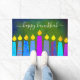 Happy Hanukkah Script Modern Boho Candles on Green Doormat