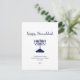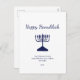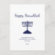 Happy Hanukkah Holiday postcard, with a simple blue menorah and script typography design. With blue customisable lettering, you can add your own information. A festive way to send well wishes to friends and loved ones.