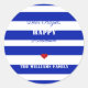 Happy Hanukkah Striped Pattern Blue and White Classic Round Sticker