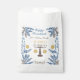 This charming paper favour bag is perfect for adding a personal touch to your Hanukkah celebrations. Featuring an elegant “Happy Hanukkah” greeting in a stylish font, the bag is adorned with intricate blue and gold floral patterns and traditional symbols like coins and a menorah with lit candles. The customisable text below the greeting, such as “From [your names] Family,” allows you to tailor the message to your liking, making it a unique and thoughtful choice for holiday favours.