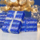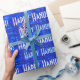 Shades of blue, baby blue, and white with a Jewish Religion theme for gift wrapping supplies. Happy Hanukkah White and Blue Wrapping Paper.
