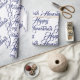 Happy Hanukkah white and navy blue elegant script Wrapping Paper