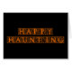 "Happy Haunting" ornamental text in vibrant orange letters, a humourous and sophisticated design for a haunting Halloween