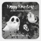 A trio of big-eyed ghosts out in a creepy night sky decorate this sticker you can customise for yourself.