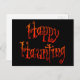 "Happy Haunting" text in spectral orange letters, with a few ghostly eyes, a humourous design for a haunting Halloween