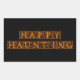 "Happy Haunting" ornamental text in vibrant orange letters, a humourous and sophisticated design for a haunting Halloween