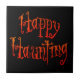 "Happy Haunting" text in spectral orange letters, with a few ghostly eyes, a humourous design for a haunting Halloween
