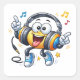 Funny cartoon character wearing oversized headphones, dancing joyfully to music with a big smile and playful hand gestures. Surrounded by colorful music notes, stars, and motion lines, this vibrant illustration captures fun, rhythm, and positive energy. Perfect for music themes, kids designs, stickers, posters, apps, games, playlists, DJ branding, social media, education, and creative digital or print projects.