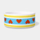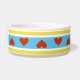 A cheerful red heart pattern on your choice of lovely ceramic pet bowl. A bright and positive graphic customizable in your pet's favorite background accent color. Add a bright and positive pop of color to your 'best friend's' daily routine. Simple and sweet...What more could your pooch ask for? Cookies sold separately...