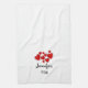 This cute happy red hearts personalised kitchen towel is the perfect kitchen decorating idea for a Valentine's Day or any time of year.