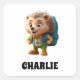 Cute, happy hedgehog goes to school with a schoolbag on his back (customise/personalise text)