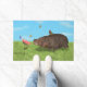 A happy hippopotamus with a big smile on his face looks at pretty red flower. A colourful tropical bird sits on his back and butterflies hover around him. The blue sky with puffy white clouds and the green grass complete the background of this whimsical image perfect for the young at heart. Customise by adding your own caption, name, or monogram to the product. Two of the butterflies and the flower are from Pat’s Flora and Fauna, the hippo is from Karen’s Scraps and Graphics, and the bird is from ZaZa’s Scrap and Tubes, all from Digital Scrap Designs.