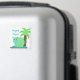 A cute green hippo wading in the water. A palm tree in the background. Says 'Happy Hippo'
