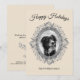 Happy Holiday Silver Grey Leaves Wreath Photo Card