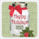 Happy Holidays 2015 Rustic Mason Jar Holly and Bow Custom Stickers.