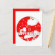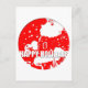Vintage illustration of Santa Claus into a circle with "Happy Holidays" (white lettering and drop shadow not customisable) on postcard. Back ofthe postcard is in red background.