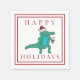Happy Holidays Alligator Santa Reindeer Wine Napkin