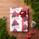 Christmas red farm barn with red tractor on white background with Happy Holidays text.