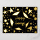 Happy Holidays Black and Gold Stars Christmas Foil Holiday Postcard