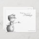 Cute black and white postcard with a pencil illustration of a snowman with a bird. Personalise the text with your own. Illustrated and designed by Patricia Alvarez.
