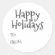 Happy Holidays black white to from blank cute Classic Round Sticker