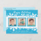Happy Holidays postcard with cheerful holiday photos of your family. Cute modern cards decorated with bright blue border of snowflakes for winter greetings.