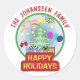 Spread the festive cheer with our 'Happy Holidays Bright Colourful Bold Typography Classic Round Sticker'! Add a personal touch to your holiday gifts with this vibrant sticker. Featuring a lively design with Christmas trees, fireworks, gifts, balloons, wine, and bold 'Happy Holidays' typography, it's the perfect way to make your presents stand out. Customise it with your family name on top for an extra special touch. Make your holidays merry and bright – order now and add a pop of colour to your holiday season!