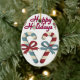 Happy Holidays Candy Cane Heart Ceramic Tree Decoration