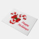 Doormat shown in white with a festive holiday candy canes print.