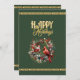 Embrace the seasons warmth with this elegant Christmas card, featuring a beautifully detailed cardinal wreath adorned with luxurious gold trimmings. It is a perfect way to send festive wishes to your loved ones.