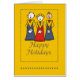 Customisable holiday cards that feature 3 choir ladies, a yellow background and the saying Happy Holidays. Great cards to send to family and friends during the holiday season.