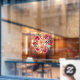 Happy Holidays white script over red flowers and greenery are featured on this window cling. Select ANY SIZE and *cling on the front (inside) or back (outside) of the window. (Size shown is 24" x 24", but can be made larger or smaller.)