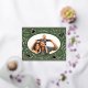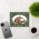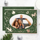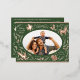 Happy Holidays Christmas Photo Woodland Doodle Foil Holiday Postcard Foil Christmas Postcard features your favourite photo surrounded by cute woodland animals and winter floral elements and all tied together with a whimsical coquette bow with the text "Wishing you a happy holiday" in modern typography on a green background and personalised with your family name. On the reverse add your custom message. Perfect for family and friends for Christmas and the holidays. Created by Evco Studio www.zazzle.com/store/evcostudio