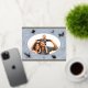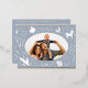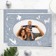 Happy Holidays Christmas Photo Woodland Doodle Foil Holiday Postcard Foil Christmas Postcard features your favourite photo surrounded by cute woodland animals and winter floral elements and all tied together with a whimsical coquette bow with the text "Wishing you a happy holiday" in modern typography on a pale blue background and personalised with your family name. On the reverse add your custom message. Perfect for family and friends for Christmas and the holidays. Created by Evco Studio www.zazzle.com/store/evcostudio
