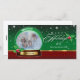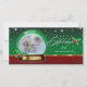 Happy Holidays on green background, red stripes on thirds, add your photo inside the snow globe and your family name. Gold trim on top & bottom
