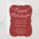 Happy Holidays written in twinkle lights makes this cranberry red, office party invitation shine.