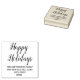 Christmas holiday rubber stamp with text, "Happy Holidays" in a beautiful cursive script font, your family name, and address.