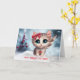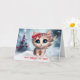A personalised Christmas holiday card featuring an adorable kitten in the snow, a beautifully decorated tree, and the option to customise the name on the cover, making it extra special for someone!