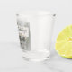 This custom shot glass features a Christmas or holiday themed background with a nostalgic, retro style Christmas scene. A cream coloured text box appears in the centre with a sample message of "Happy Holidays" printed in an elegant black font. A sample family name follows which can be personalised to include your own name, family name, company or business name, or custom quote or message.