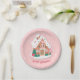 Happy Holidays Cute Pink Snowy Gingerbread House Paper Plate