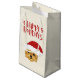 NewParkLane - Sweet Christmas Gift Bag for dog lovers, featuring a cute Yorkshire Terrier cartoon, wearing a Santa hat, with a Happy Holidays wish in fun, red, script typography.