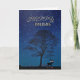 This card depicts a deer and a winter tree silhouetted against a dark starry sky. The deer is wearing a santa-style winter hat and boots. The greeting in golden-coloured script on the front is "HAPPY HOLIDAYS", or this can be edited as preferred. The message inside is also editable, or you can use the default "Wishing you a holiday season full of joy and happiness".