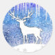 Original watercolor painting by Sandra Gale featuring a white deer silhouette standing majestically among icicles and snow. Especially perfect as an alternative to a Christmas card, concentrating rather, on the magic of the winter holiday season.