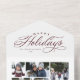 Send one of a kind holiday greetings with this unique trifold photo card. Featuring an elegant type treatment saying "Happy Holidays" along with a collage of seven photos, this design also features a detachable section with a single photo. Include a family update on the back. Best of all, this can be folded and sent without an envelope! The maroon type colour is elegant and festive but other colours are available in the collection.