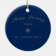 Celebrate the holiday season with this elegant navy blue Christmas ornament featuring “Happy Holidays” in a beautiful gold script, a customisable year, and your family name in elegant gold serif. A delicate gold snowflake accent adds a luxurious touch. Perfect as a keepsake for your own tree or as a thoughtful personalised gift for family, friends, or neighbours to treasure year after year.