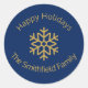 Happy Holidays Elegant Navy Gold Snowflake Custom Classic Round Sticker