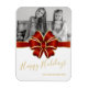 Holiday greetings. Gold Red Ribbon Bow Script Happy Holidays Photo Magnet easy to personalise with a family photo and your family signature.