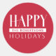 Happy Holidays & Family Name Festive Red Sticker