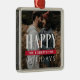 Happy Holidays Family Name Red Banner Photo Metal Tree Decoration